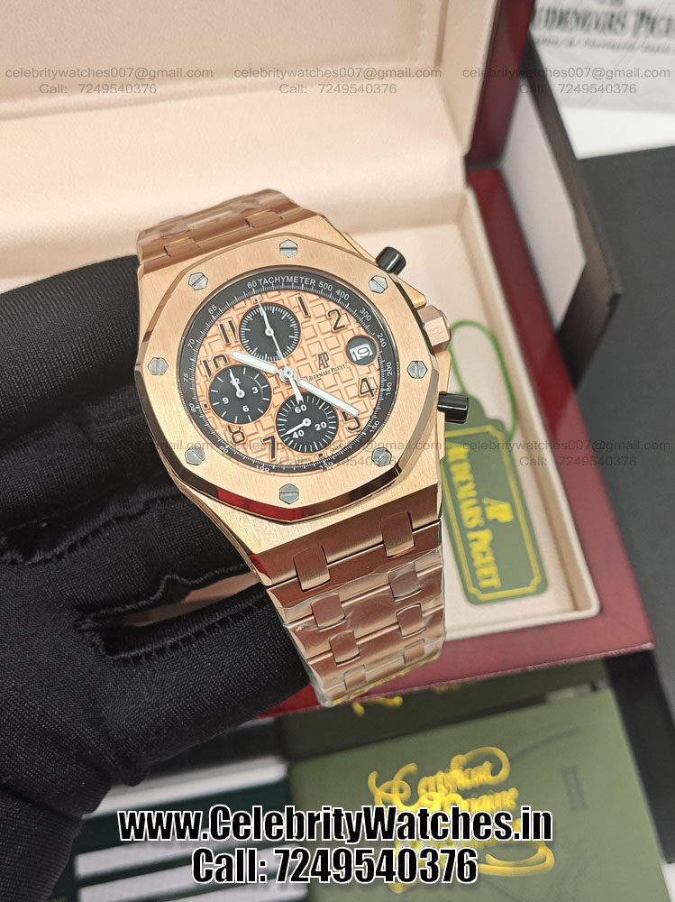 | CASE | – Size: 42 mm – Screw-Down case-back with Royal Oak Logo & Winding Crown to set time – Triple ‘AAA’ Grade Top Quality Replica with all Functions Working |