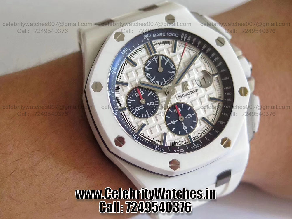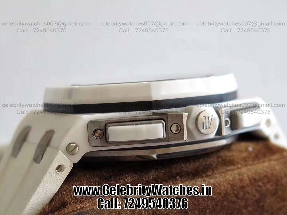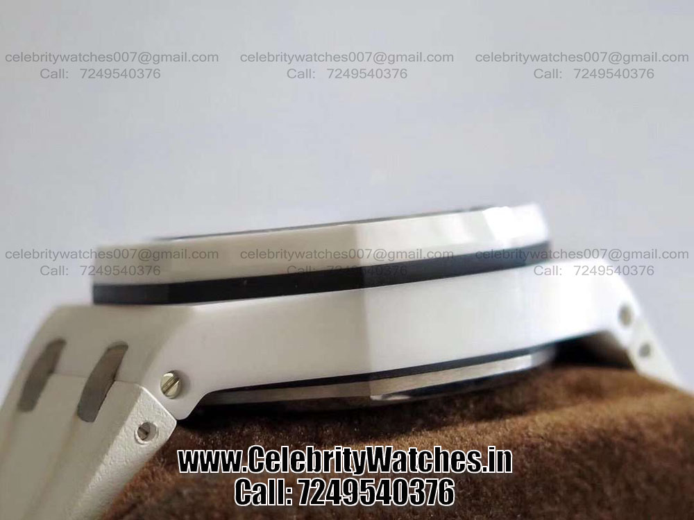| CASE | – Size: 44mm, White Ceramic Case – Thickness: 14.4mm, Screw Locked Crown – Transparent Sapphire Crystal Case-back to see inner machine – Dimensions and Weight 100% identical with genuine. |