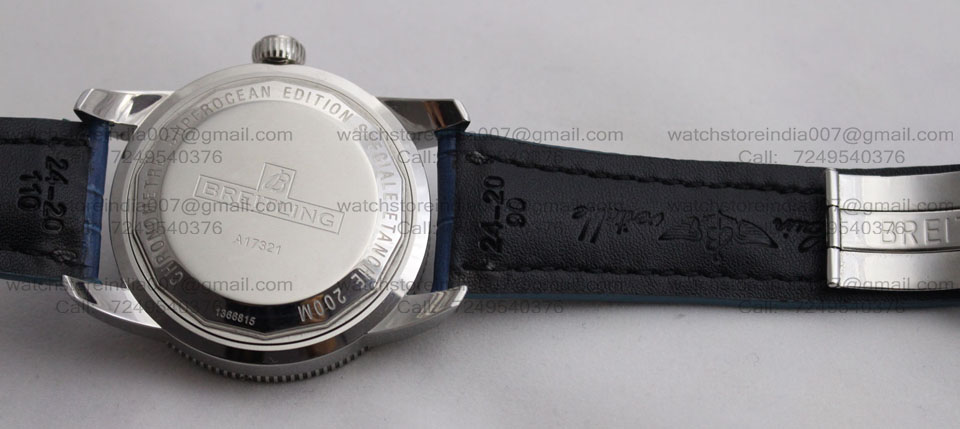 | BRACELET | – Blue Alligator Leather Strap with white stitching |