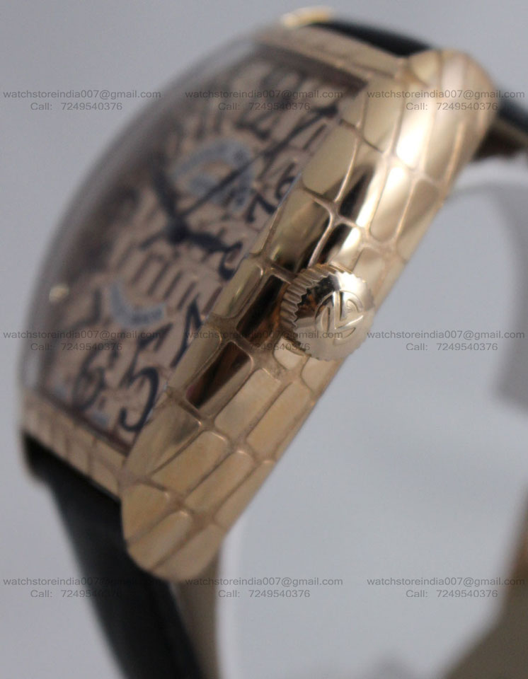 | CASE | – Size: 39mm – Polished Gold Croco Design Case with Screw-down case-back and all necessary markings. Winding Crown to set time – Triple ‘AAA’ Grade Top Quality Replica with all Functions Working |