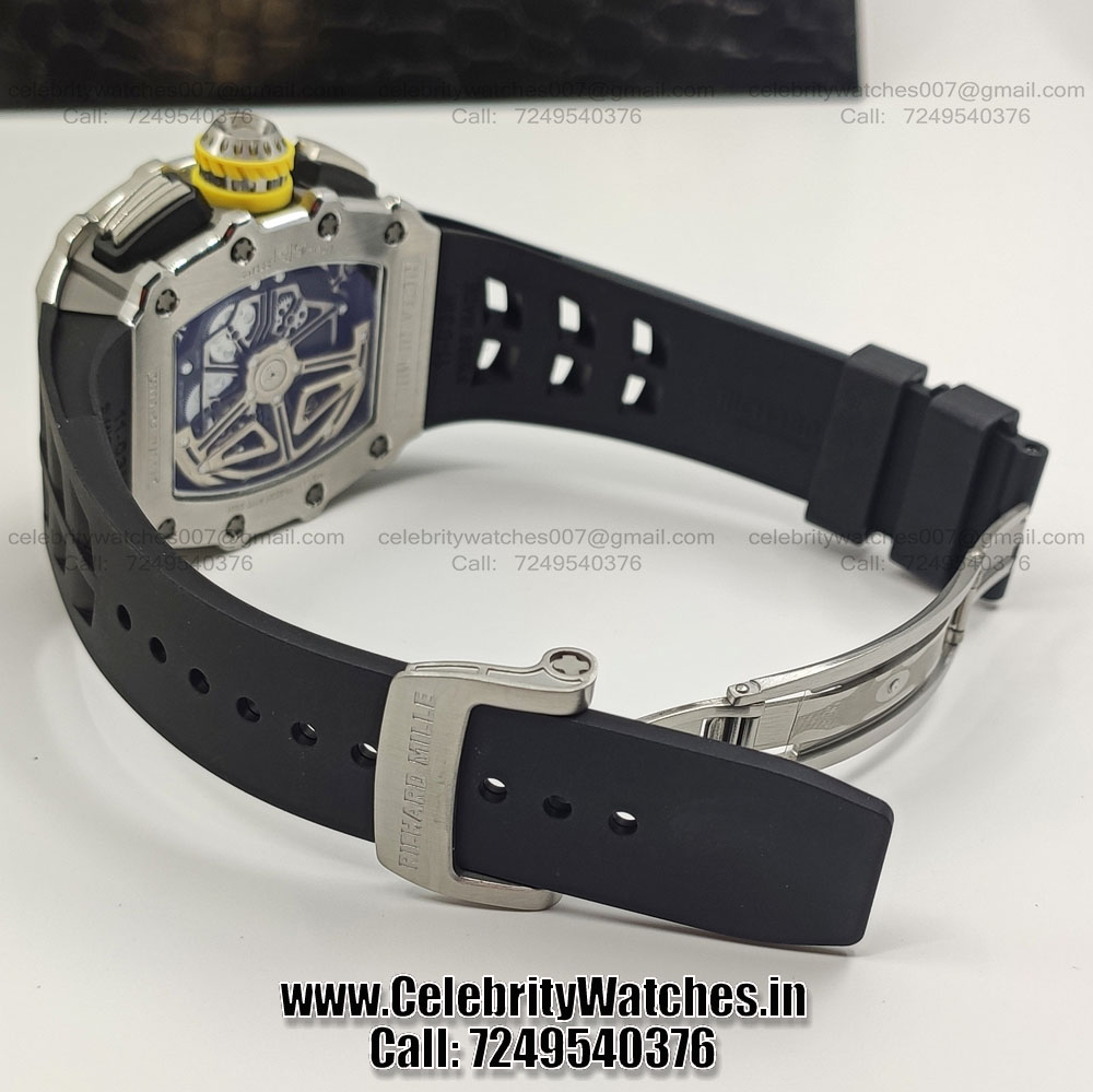 | BRACELET | – Black Rubber Strap with Steel RM buckle clasp lock |