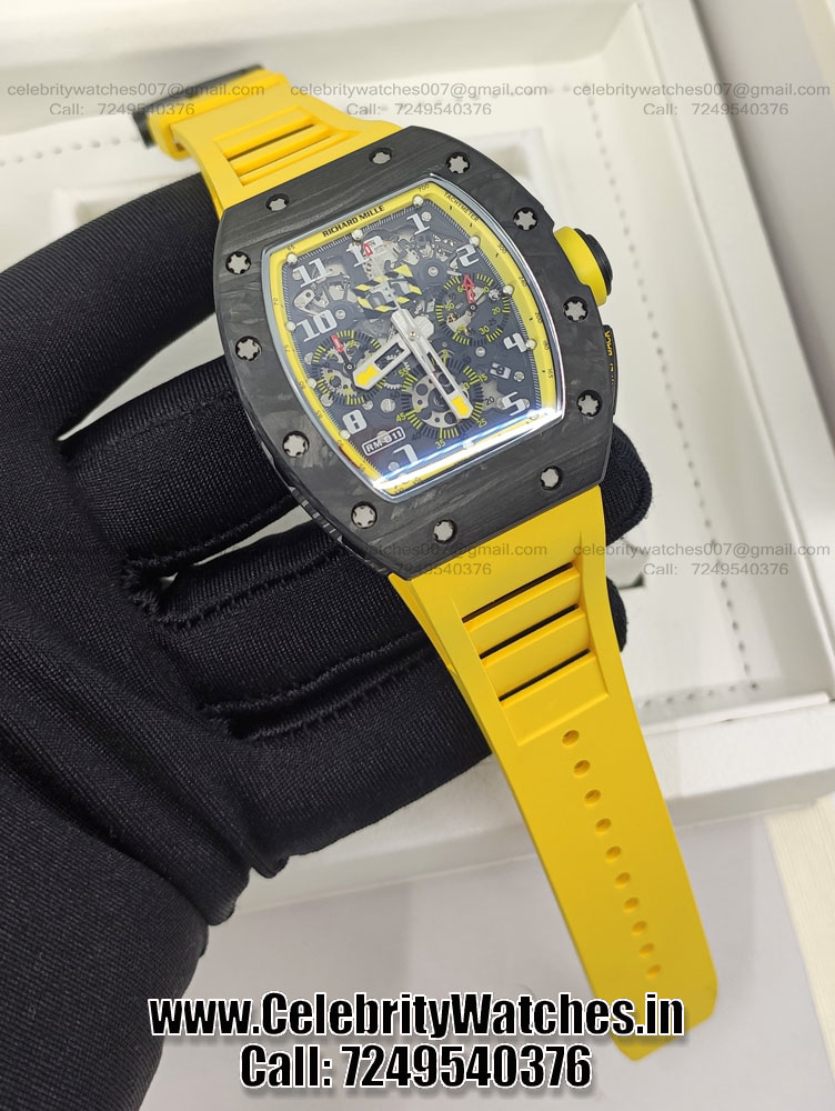| BRACELET | – Yellow Rubber Strap with Steel RM buckle clasp lock |