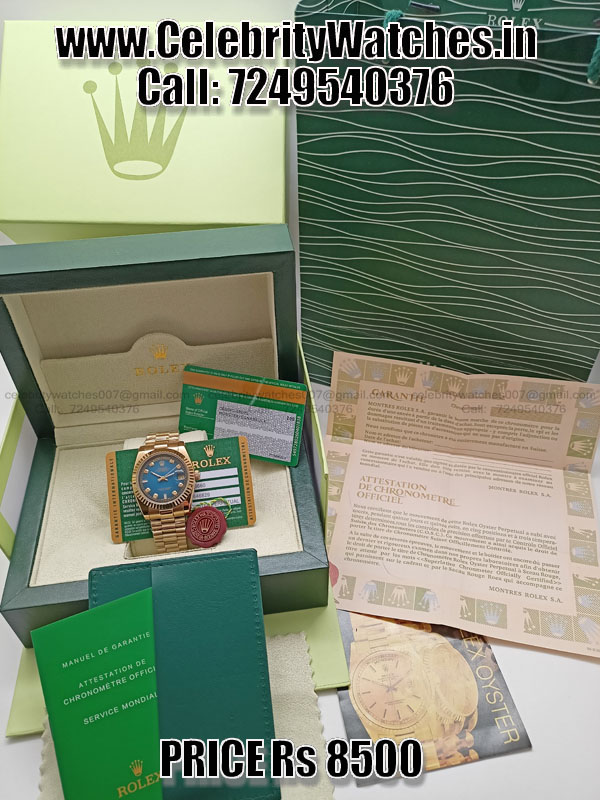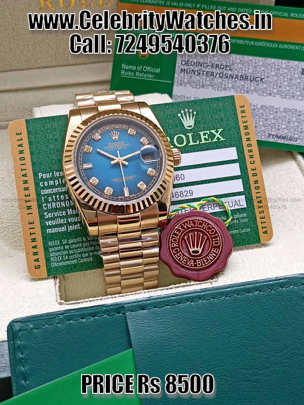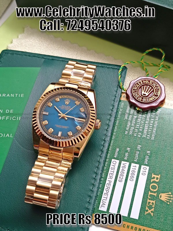 | CASE | – 36mm, 18k Gold plated Stainless Steel Case – Screw-Down case-back & Winding Crown to set time – ROLEX ROLEX Laser Engraving on Rehaut Ring – High Quality First Copy Replica with all Functions Working |